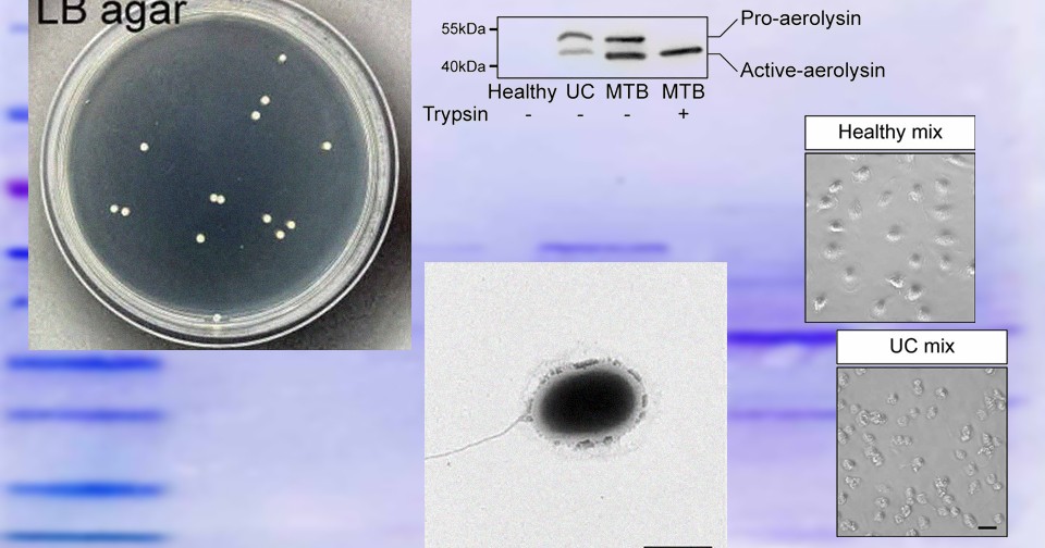 Исследователи предположили, что макрофагов уничтожает какой-то продукт жизнедеятельности бактерий, населяющих кишечник. Культивировав бактерии из стула больных колитом и здоровых людей, они обработали их выделениями культуру макрофагов. Обнаружилось, что тестовые образцы для них гораздо губительнее, чем контрольные. Поиски конкретного действующего вещества привели к аэролизину — порообразующему токсину бактерий рода Aeromonas. Эти бактерии нашлись в стуле 72% больных колитом, а у здоровых людей они встретились лишь в 12% образцов. Тесты на мышах показали, что заселение их кишечника этой бактерией, как и непосредственное воздействие аэролизина, действительно вызывали нехватку резидентных макрофагов.