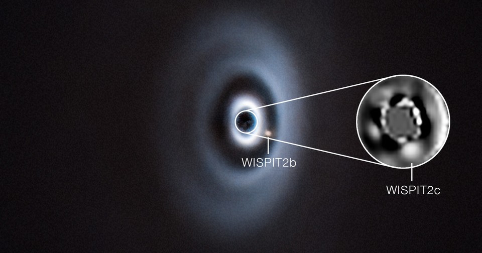 WISPIT 2 представляет собой светило типа Т Тельца с массой, близкой к массе Солнца, и возрастом всего 5,1 миллиона лет. Звезда находится в 433 световых годах от нас и входит в OB-ассоциацию Скорпиона-Центавра. Ранее у нее заметили протопланетный диск, состоящий из колец и зазора, причем в зазоре обнаружился растущий за счет аккреции экзогигант. Астрономы обнаружили у звезды еще один объект, похожий на протопланету, однако он остался в статусе кандидата, и в свежем исследовании они решили подтвердить или опровергнуть его существование.