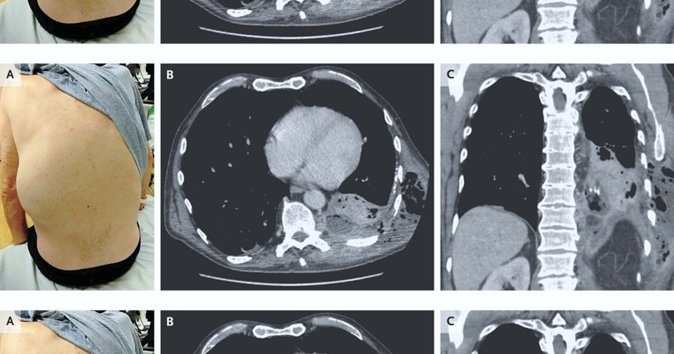 При первичном осмотре Адеолува Айоола (Adeoluwa Ayoola) и Крешник Зейнуллаху (Kreshnik Zejnullahu) из Калифорнийского университета выявили у пациента ослабление дыхания у основания левого легкого, а также болезненное образование на спине с левой стороны. Компьютерная томография грудной клетки показала уплотнение левой нижней доли, которое связали с небольшим многоочаговым плевральным выпотом, содержащим газ. Пациенту провели небольшую операцию и дренировали скопление гноя в грудной стенке. Больной прошел длительный курс антибактериальной терапии, и в течение шести месяцев его состояние нормализовалось.