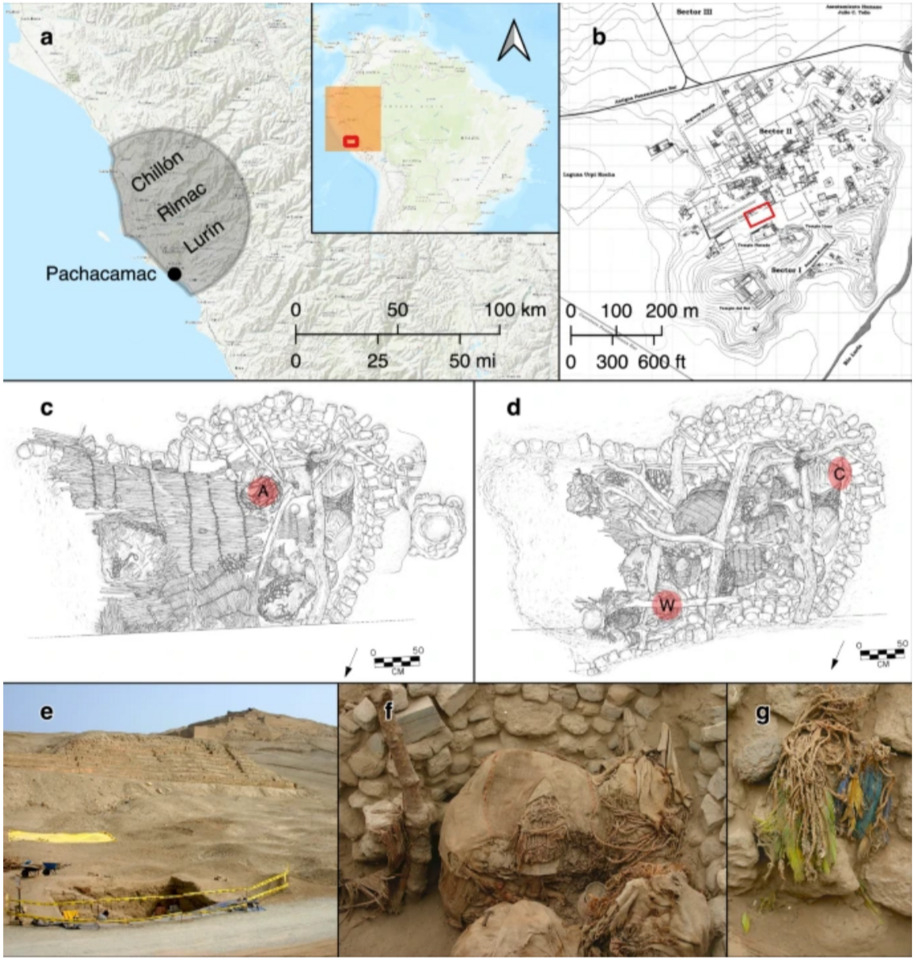 Именно находкам, связанным с культурой ичсма, посвятили статью Джордж Ола (George Ola) из Австралийского национального университета и его коллеги из Австралии, Испании, Перу и США. Ученые сосредоточили свое внимание на птичьих перьях, раскопанных на древнем городище Пачакамак (Ичсма), которое находится неподалеку от Лимы. В священной части этого города, рядом с одним из храмов, еще в 2005 году археологи обнаружили большую непотревоженную гробницу, в которой лежали 34 своеобразных свертка с человеческими останками. Причем, судя по сопутствующим находкам и расположению захоронения, как минимум часть останков принадлежала представителям древней элиты.