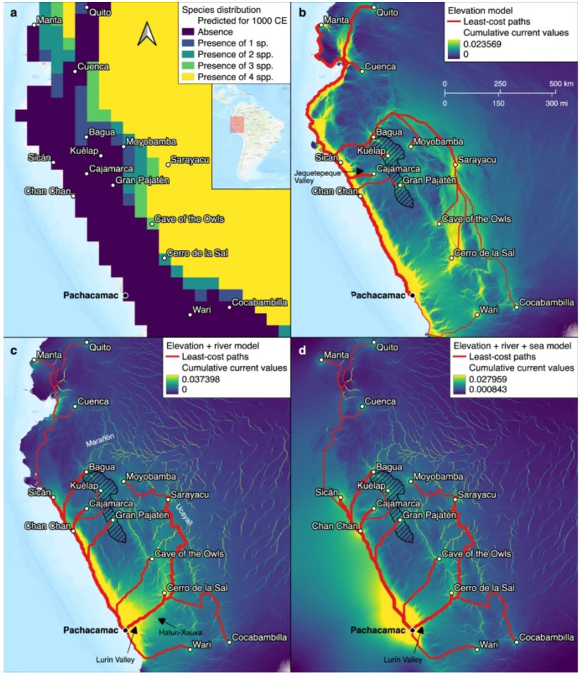 Анализ изотопного состава перьев попугаев говорит о том, что их живыми доставляли из Амазонии, а затем какое-то время держали на побережье в неволе, так как рацион птиц заметно менялся в течение жизни. Полученные выводы позволили ученым нанести на карту региона предполагаемые маршруты, по которым попугаев поставляли в Пачакамак из тропических лесов и саванн Амазонии или из соседних с ичсма крупных культурных центров побережья.