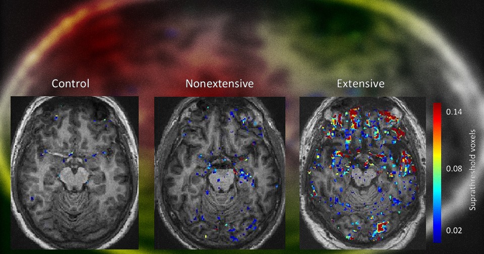 Хотя спортсмены из контактных видов спорта не практиковались уже в среднем 12 лет, ученые нашли у них нарушения гематоэнцефалического барьера на МРТ (проникновение контрастного вещества в ткани мозга). В особенности пострадало левое полушарие мозга: левая клиновидная извилина, левая нижняя лобная извилина, левая средняя лобная извилина и левая средняя поясная извилина (p = 0,0045 по сравнению с контрольной группой).