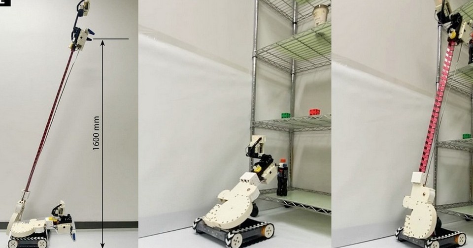 Корейские инженеры разработали устройство для роботов наподобие измерительной рулетки. В развернутом виде оно удерживает жесткость и превращается в «руку», которая может удерживать груз массой до 0,5 килограмм. Технология получила название FoRoGated-Structure, и ее уже использовали для создания двух роботов. Один может дотянуться до высоты в 1,6 метра, а второй представляет собой складной мобильный 3D-принтер, говорится в статье, опубликованнной в журнале Science Robotics.