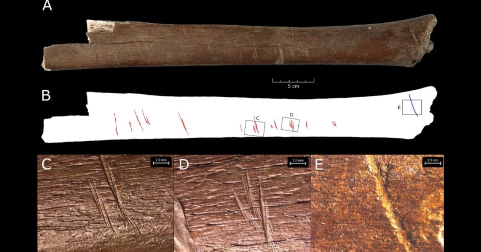 На этот раз исследователи сосредоточили свое внимание на остатках фауны из этого местонахождения, которая представлена как костями огромных и крупных млекопитающих, так и остатками черепах и рыб. На части находок ученые выявили порезы, сделанные каменными орудиями. Насечки присутствовали на костях бобра, причем их выявили не только в области тазобедренного сустава, но и на нижней челюсти. Последние, возможно, указывают на то, что с бобра, помимо прочего, сняли шкуру. Порезы сохранились на ребре и фрагменте бедренной кости одного или двух бурых медведей, что исследователи интерпретировали как разделку туши на мясо. Следы срезания мяса присутствовали и на костях как минимум двух первобытных туров.