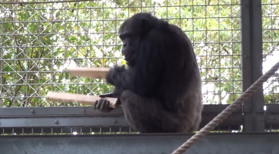 Приматологи из Японии описали импровизированные ритмические композиции, которые спонтанно исполнял самец шимпанзе из исследовательского центра при Киотском университете. Он отрывал доски от дорожки в вольере и барабанил или проводил ими по ограждению — иногда в течение нескольких минут. Интервалы между ударами были одинаковыми, а структура композиций напоминала структуру вокализаций, характерных для шимпанзе. Работа опубликована в журнале Annals of the New York Academy of Sciences.