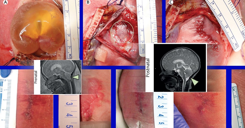 У всех новорожденных при осмотре было обнаружено неповрежденное место заживления без признаков утечки спинномозговой жидкости, инфекции, отслоения кожи или роста аномальных тканей. Послеродовая магнитно-резонансная томография, проведенная, как только состояние новорожденных стало клинически стабильным, показала уменьшение грыжи заднего мозга. Ни одному ребенку перед выпиской не требовалось шунтирование по поводу гидроцефалии.