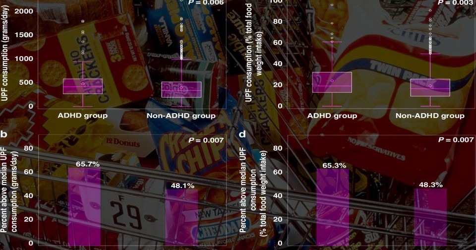 Тали Синай (Tali Sinai) из Израильского центра по контролю заболеваний и Иерусалимского университета с коллегами проанализировал данные национально репрезентативного кросс-секционного исследования и выяснили, что высокое потребление детьми ультраобработанной пищи связано с увеличенным риском синдрома дефицита внимания с гиперактивностью (СДВГ). В работе использовали данные 1135 детей в возрасте 6–11 лет, полученные в ходе исследования Rav-MABAT в 2015–2016 годах. Родители или опекуны в ходе интервью предоставляли данные об их демографических данных, состоянии здоровья и диете, дополнительно проводили антропометрические измерения и регистрировали рацион за последние 24 часа. Статистическую обработку данных проводили методами логистической и линейной регрессии. Результаты опубликованы в журнале Pediatric Research.